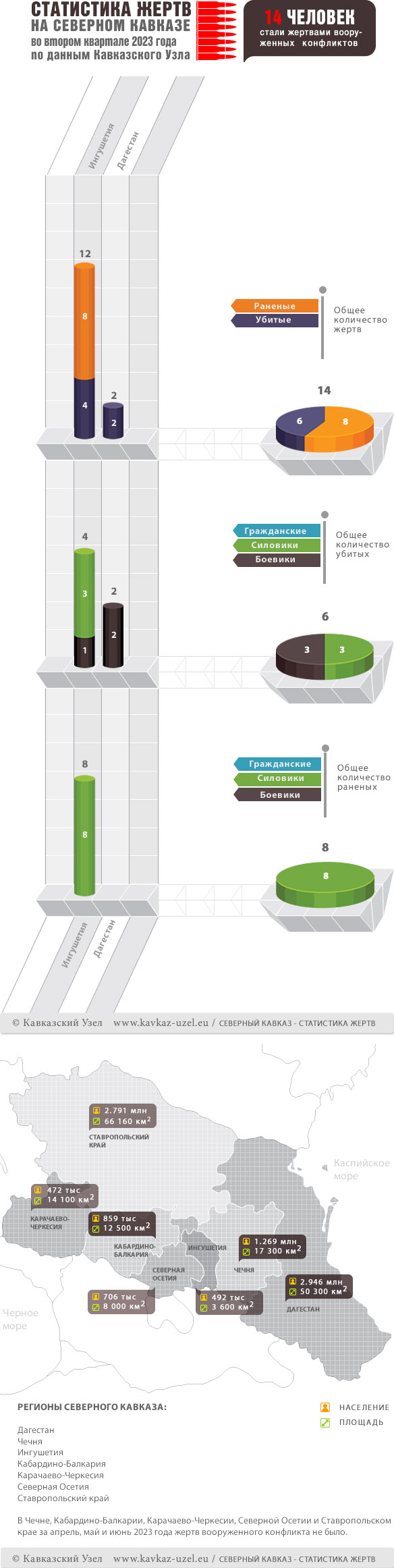 Инфографика. Статистика жертв на Северном Кавказе во втором квартале 2023 года по данным Кавказского Узла