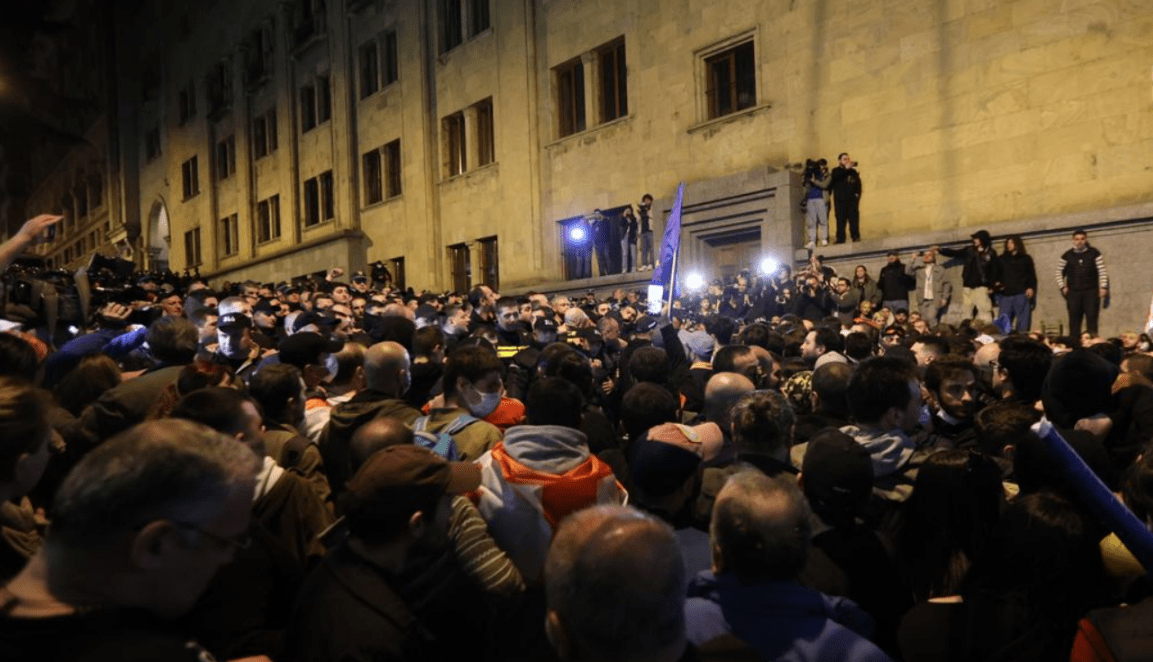 Как писал "Кавказский узел", юридический комитет парламента Грузии поддержал в первом чтении законопроект "О прозрачности иностранного влияния", обсуждение проходило на фоне массовой акции протеста. Силовики стянули спецназ и водометы к зданию парламента, полиция приступила к задержаниям протестующих.