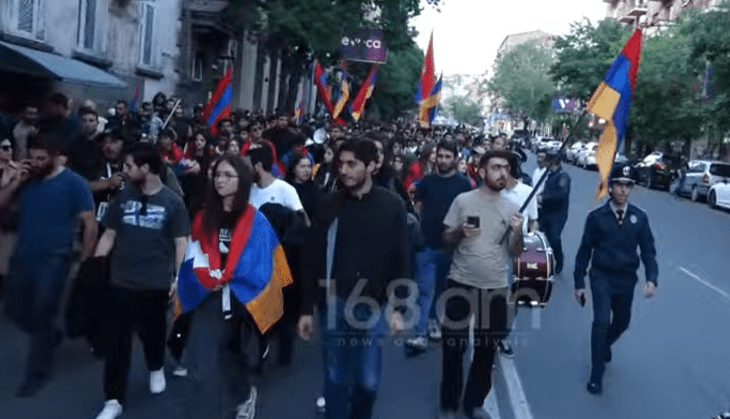 Армянская молодежь провела шествие в поддержку оппозиционного движения, которое возглавляет архиепископ Баграт Галстанян. После шествия участники акции присоединились к митингу на площади Республики, передает корреспондент "Кавказского узла" со ссылкой на прямой эфир акции портала 168․am.