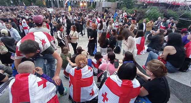Как писал "Кавказский узел", протестующие против законопроекта об иноагентах вышли сегодня на акцию около здания парламента в Тбилиси. Сегодня депутаты обсуждают вопрос о преодолении президентского вето, которое 18 мая Саломе Зурабишвили наложила на закон об иноагентах ("О прозрачности иностранного влияния"), назвав его препятствием для евроинтеграции страны. Парламент назначил на 28 мая голосование за преодоление вето президента. 27 мая юридический комитет парламента разрешил депутатам преодолеть президентское вето на законопроект.