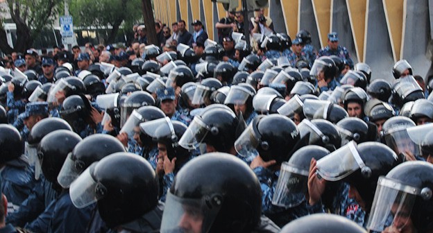 Силовики подвергли приводу девять участников акции протеста – двоих с площади Республики, еще семеро доставлены в полицейский участок с акции на улице Мясникяна, сообщил корреспонденту "Кавказского узла" пресс-секретарь МВД Армении Нарек Саркисян.