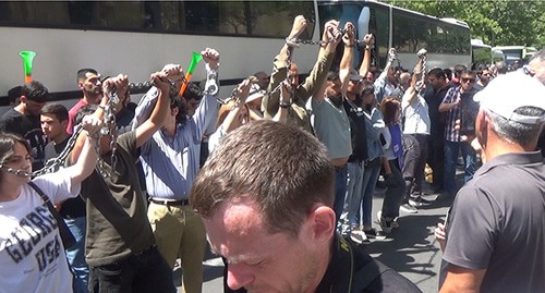 Баграт Галстанян на акции протеста заявил, что одно из требований движения на данный момент исполнено. "До сих пор нет обвинений против задержанных, а это значит, что с 17.00 [16.00 мск] они должны быть отпущены", - сказал он.