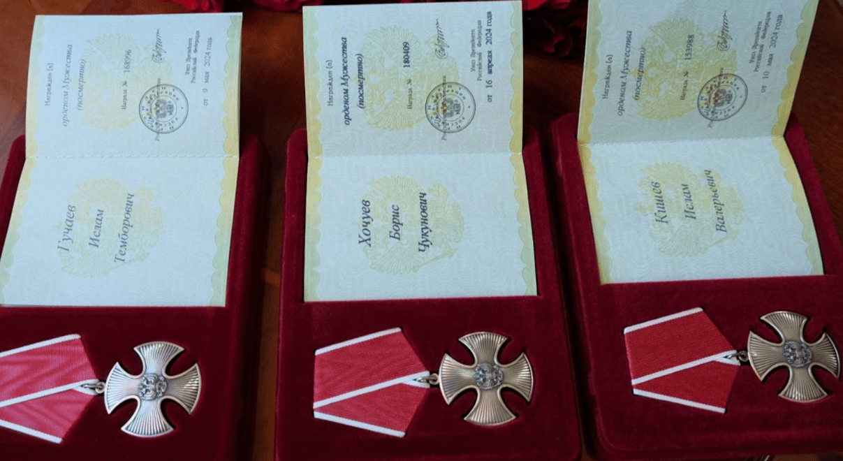 Ислам Гучаев, Борис Хочуев, Ислам Кишев убиты в боевых действиях, сообщила сегодня администрация Чегемского района в своем Telegram-канале, отчитываясь о передаче их родным орденов Мужества.