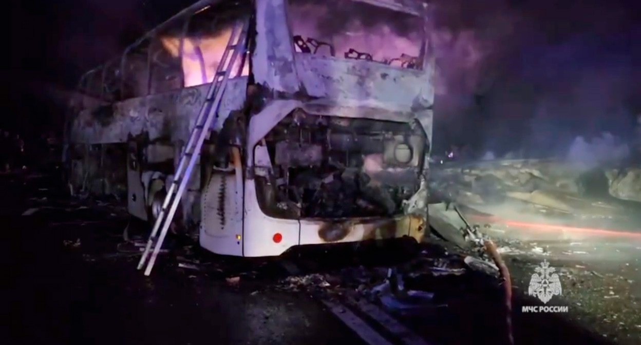 При пожаре после ДТП с автобусом под Краснодаром пострадали не менее 25 человек
