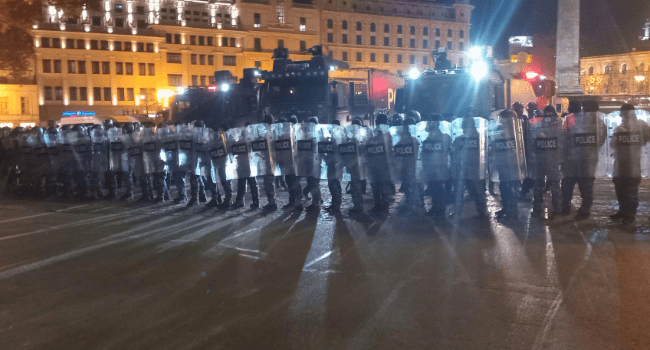 Спецназ в броне выстроился на площади Свободы и на боковых улицах у парламента Грузии.