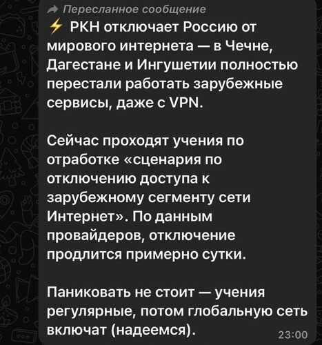 О проблемах с интернетом сегодня сообщил читатель "Кавказского узла" с ником quincy_pollich. "В Чечне сегодня проблемы с Интернетом, вернее с доступом к зарубежным ресурсам. Некоторые знакомые жалуются также на сбои в работе Ватсап* и Телеграм. По неподтверждённым данным, Роскомнадзор проводит какие-то учения по блокировке зарубежных сервисов", - написал он в своем комментарии.