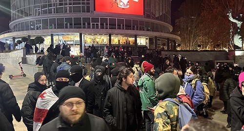 Вечером активисты сообщили, что двух их товарищей, которые шли с митинга протеста, похитили неизвестные люди. "Двоих людей похитили около метро "Руставели". Полиция ничего не делает", - рассказала участникам митинга, на котором присутствовал корреспондент "Кавказского узла", Элене.
