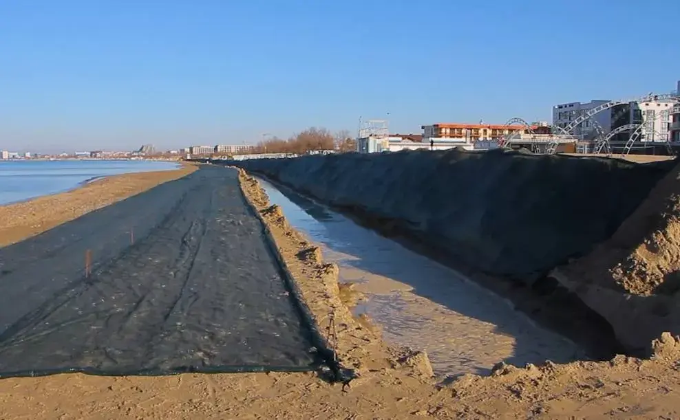 По задумке специалистов, заградительный вал и ров защитят пляжи от повторных выбросов мазута во время шторма.