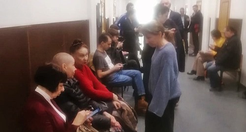 Более 20 человек собралось сегодня у зала 28 Басманного суда перед началом заседания по делу Григория Мельконьянца. Начало заседания было перенесено из-за задержки с доставкой подсудимого, передал корреспондент "Кавказского узла".