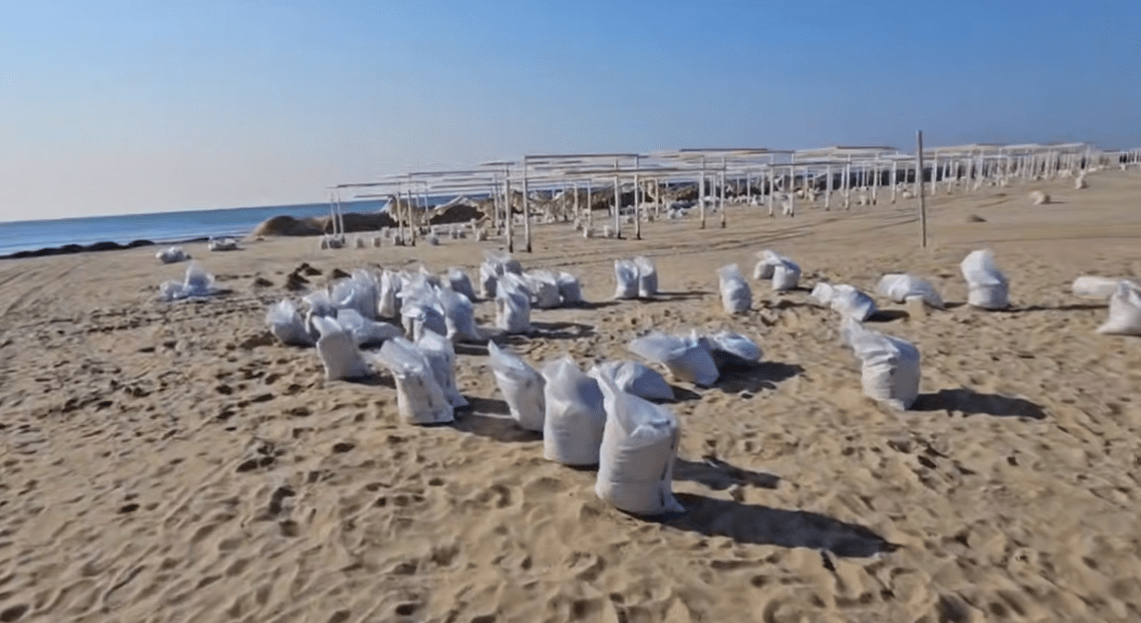 На пляже поселка Джемете волонтеры обнаружили чистый песок, упакованный в мешки, для вывоза на очистку, опубликовав видео, на котором волонтеры открывают мешки и песок в них без следов мазута, сообщил 10 февраля Telegram-канал AnapaKiteTeam.