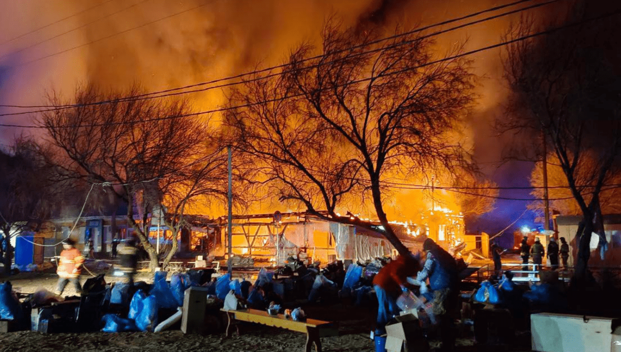 В Анапе горит штаб "Шлагбаум", где собирались волонтёры, очищавшие пляж от мазута. Пожар  охватил корпус для проживания и столовую. Часть гуманитарной помощи удалось спасти, сообщил сегодня эколог Георгий Каваносян в своем Telegram-канале.