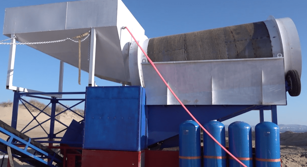 Установка для промышленной очистки песка от мазута проходит завершающую стадию тестирования на анапских пляжах, она способна очищать до 100 кубометров песка в час.