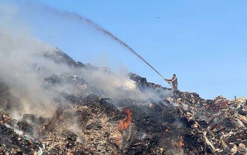 Площадь пожара на свалке в Новороссийске уменьшилась