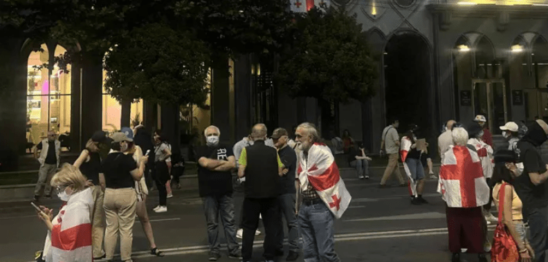 У здания парламента Грузии возобновились протесты, проспект Руставели перекрыт. Участники акции держат в руках баннеры, а также флаги Грузии и Европейского Союза, сообщило сегодня "Интерпрессньюс".