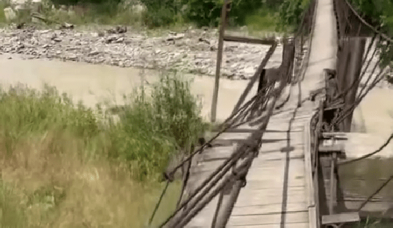 Подвесной мост между Нартаном и Адиюхом покосился, часть перекладин в нем отсутствует. При этом им вынуждены пользоваться дети и пожилые люди, пожаловались местные в соцсети.