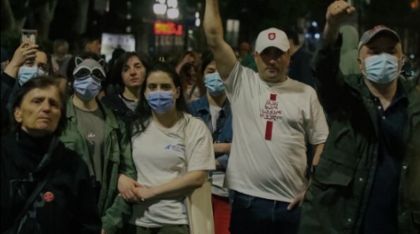 В это же время около бывшего здания Общественного вещателя Грузии проходила другая акция протеста. Ее участники пришли на проспект Руставели и присоединились к бастующим там активистам, организовав марш протеста. "Защищаем медиа, защищаем свободу", - скандировали участники шествия, пишет телеграм-канал Tbilisi_Life.