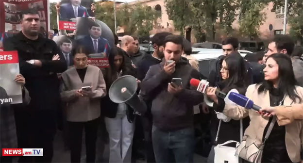 Перед зданием Национального собрания Армении проходит акция протеста в поддержку политзаключенных в Армении и граждан, удерживаемых в Баку. Инициатором акции выступило Молодежное крыло Республиканской партии Армении.