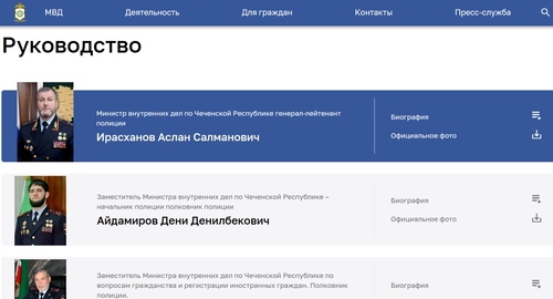 На сайте МВД Чечни, по состоянию на 12.55 мск 11 февраля, не указана должность куратора ведомства, а в списке руководства приведены только имена министра – генерал-лейтенанта полиции Аслана Ирасханова – и пяти его заместителей.