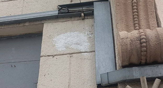 На стене дома остается только нарисованная краской с помощью трафарета надпись с оригинальной таблички, сообщает "Медиазона"*.