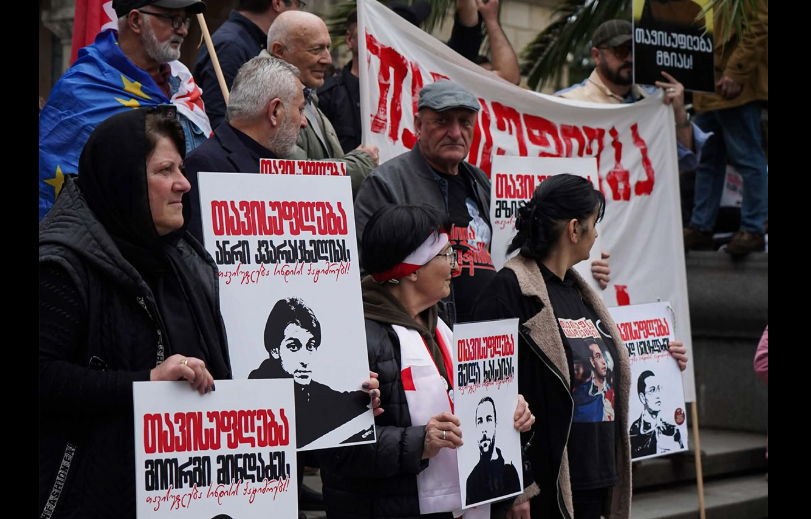 Участники акции у парламента Грузии и марша в Кутаиси потребовали освободить арестованных и осужденных "узников режима". В ЕСПЧ направлен иск от 13 участников протестов, которые подверглись преследованиям за выражение несогласия с курсом властей.