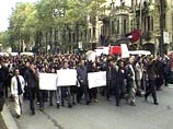 Акция студентов проходит спустя месяц, после вывода грузинских вооруженных формирований из Цхинвальского региона, сообщает телекомпания.