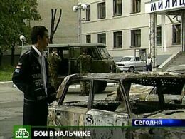 В центре Нальчика на перекрестке улиц Ленина и Ногмова лежит перевернутый легковой автомобиль. Бой ведется также и в районе Стрелки на окраине города. Там расположен крупный рынок и выезд из города в сторону Пятигорска.