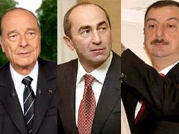 Представители французского президента сообщили, что, встречаясь с президентами Армении и Азербайджана Робертом Кочаряном и Ильхамом Алиевым, глава Франции Жак Ширак пожелал им успеха в переговорах, на которые возлагаются большие надежды, передает PanARMENIAN.Net.