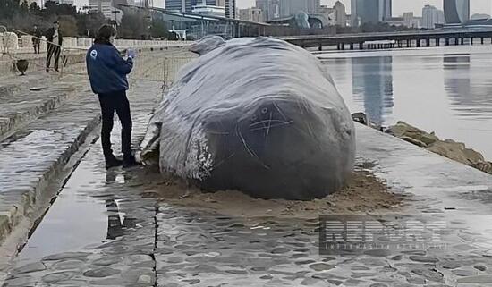 Баку покинул муляж кита в натуральную величину, который в первое время бакинцы приняли за тело погибшего морского животного. Этой ночью муляж был погружен на автомобильную грузовую платформу и уве...
