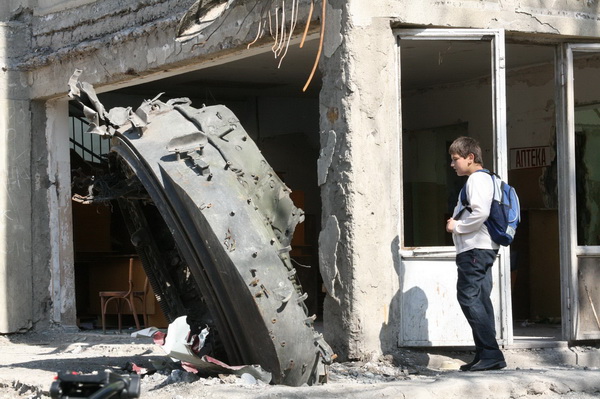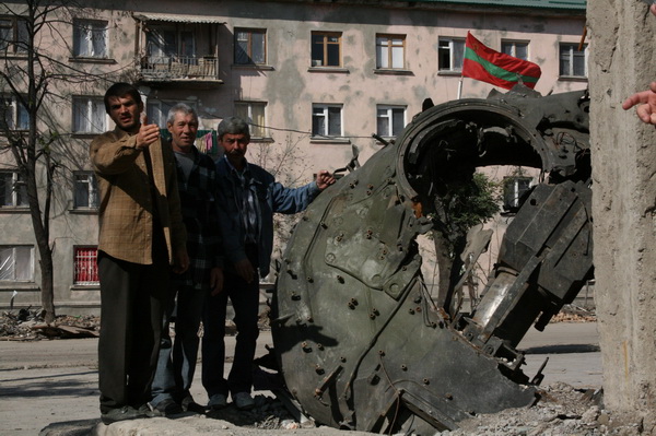 А вот и ставшая уже городской достопримечательностью Цхинвала "Башня Баранкевича" - башня грузинского танка, который генерал подбил лично. Так она выглядит сейчас, поржавела уже.