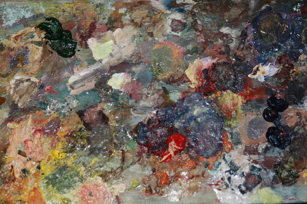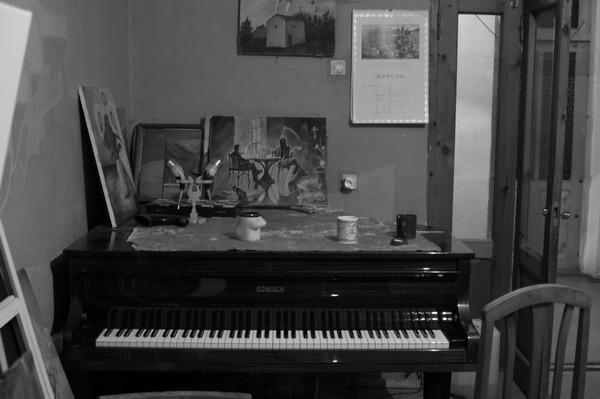Меня всегда удивляло как искусство выживает в условиях войны. Я знаю в Цхинвале как минимум одного хорошего писателя, одну хорошую исполнительницу и одного хорошего художника, а заодного и моего друга Инала Джуссоева. Это кусочки его матерской. Картины целиком будут чуть позже.