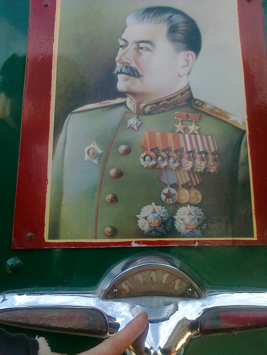 повстречал во Владике этот необычный автоэкземпляр, настоящий броневичок. я думаю, можно считать это 25-м по счету памятником Сталину в Северной Осетии, памятник на колесах. за рулем был пожилой человек в большой кепке. я с улыбкой спросил его, можно ли сфотографировать, и он как-то не по-доброму посмотрел на меня, не сказав ни слова. я принял это за согласие.