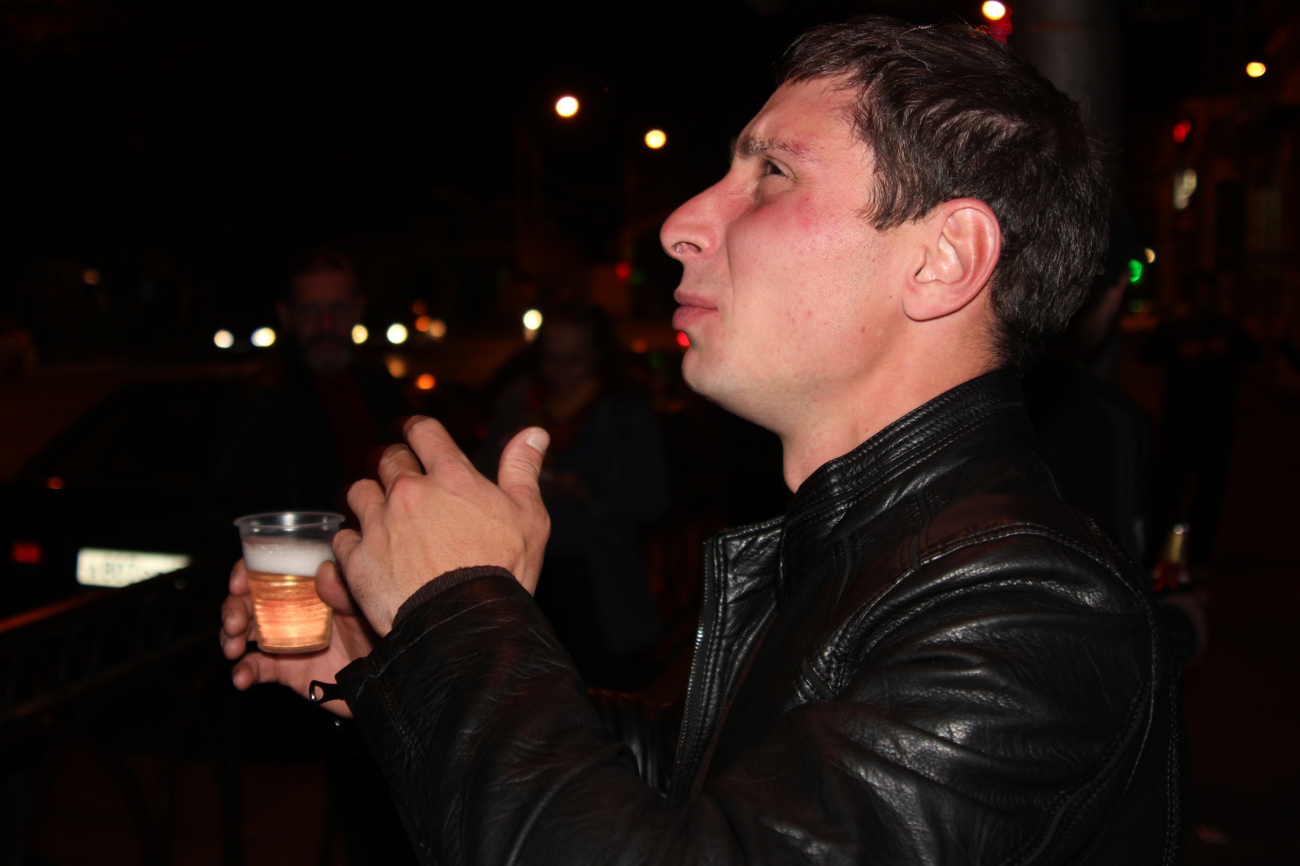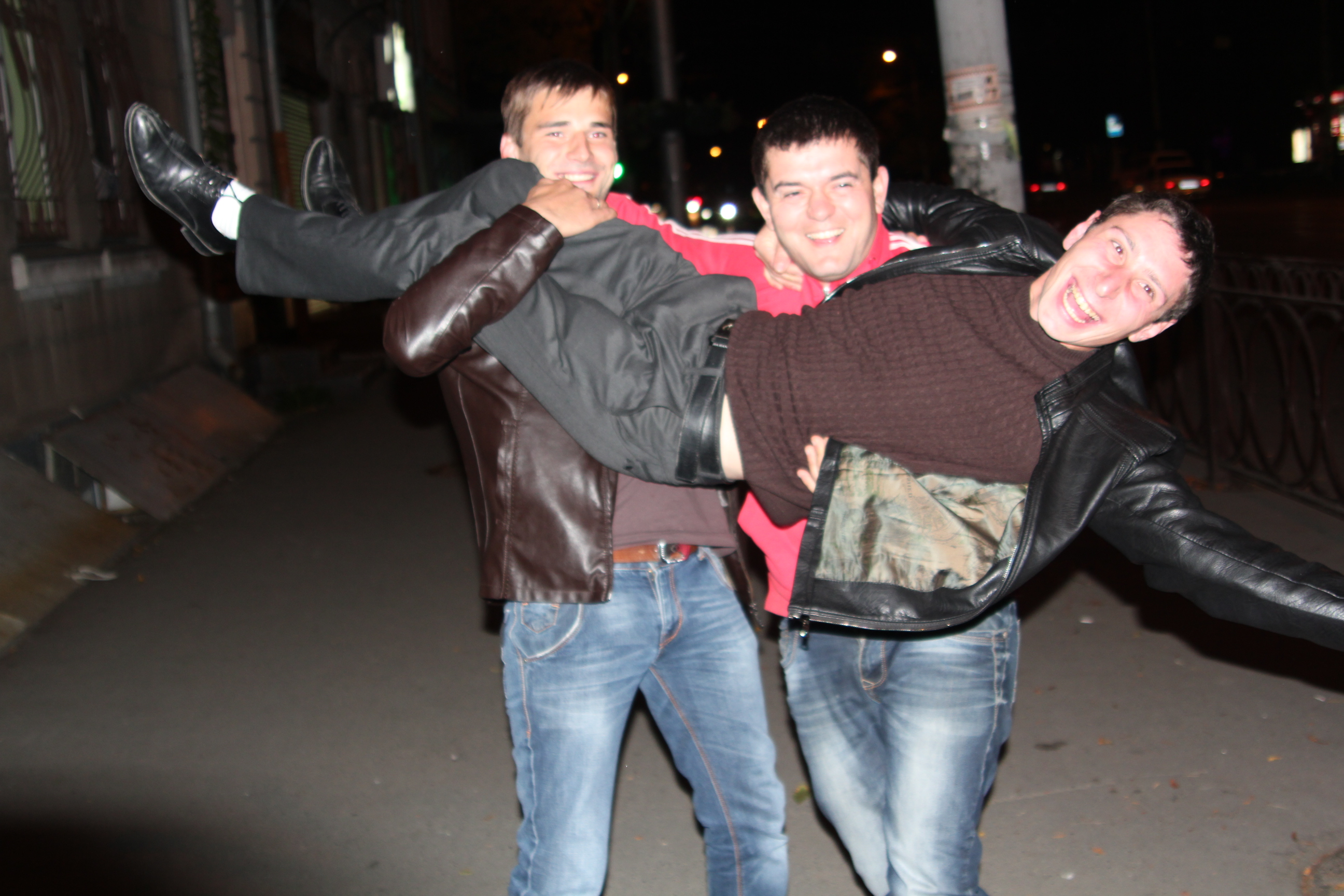 традиционное празднование рождаения ребенка в центре города у роддома на Кирова. три фото.