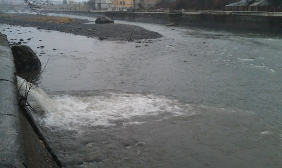 сейчас, кстати, редкие дни, когда Терек обретает приятный зеленоватый цвет, в морозную погоду он даже прозрачный бывает. это редко, потому что подавляющее время он грязный и некрасивый. но и сейчас его портят эти городские сливы. какое-то коричневое Г вливается в Терек в районе парка.