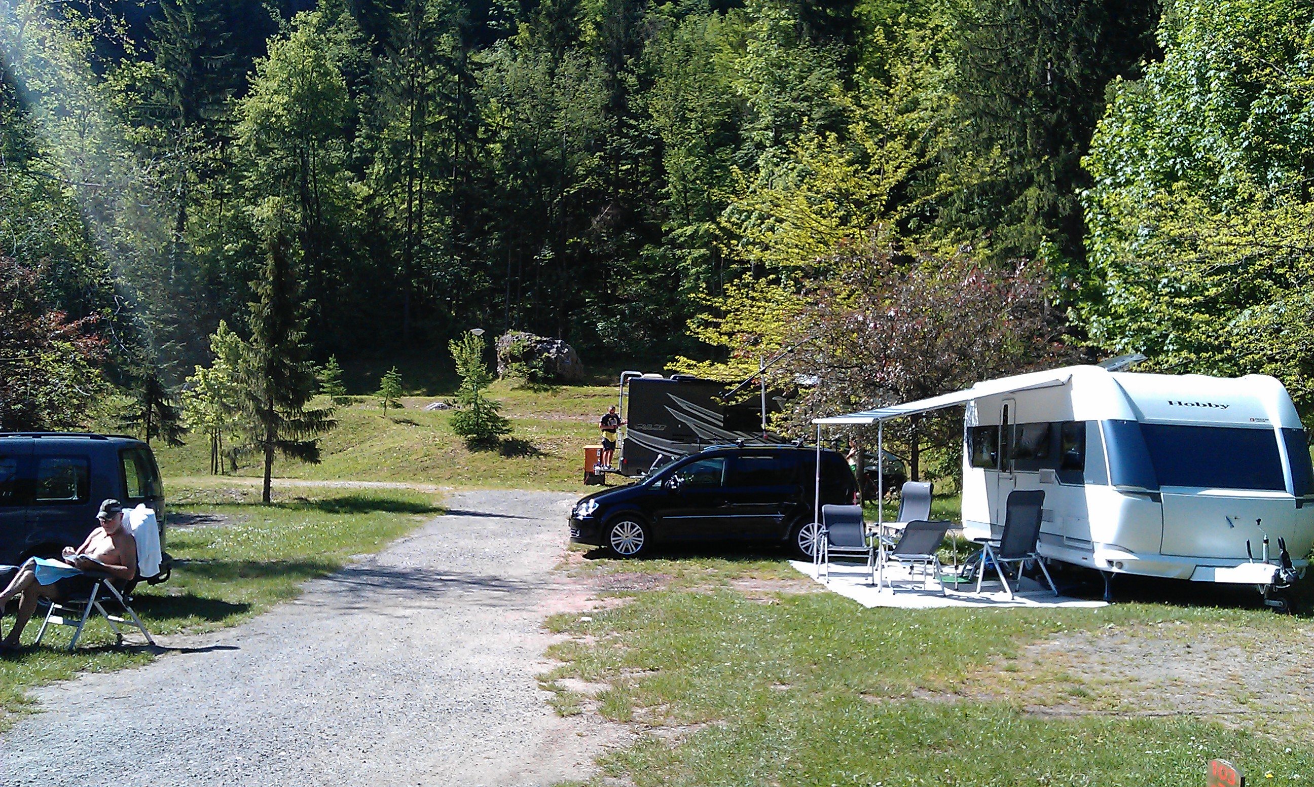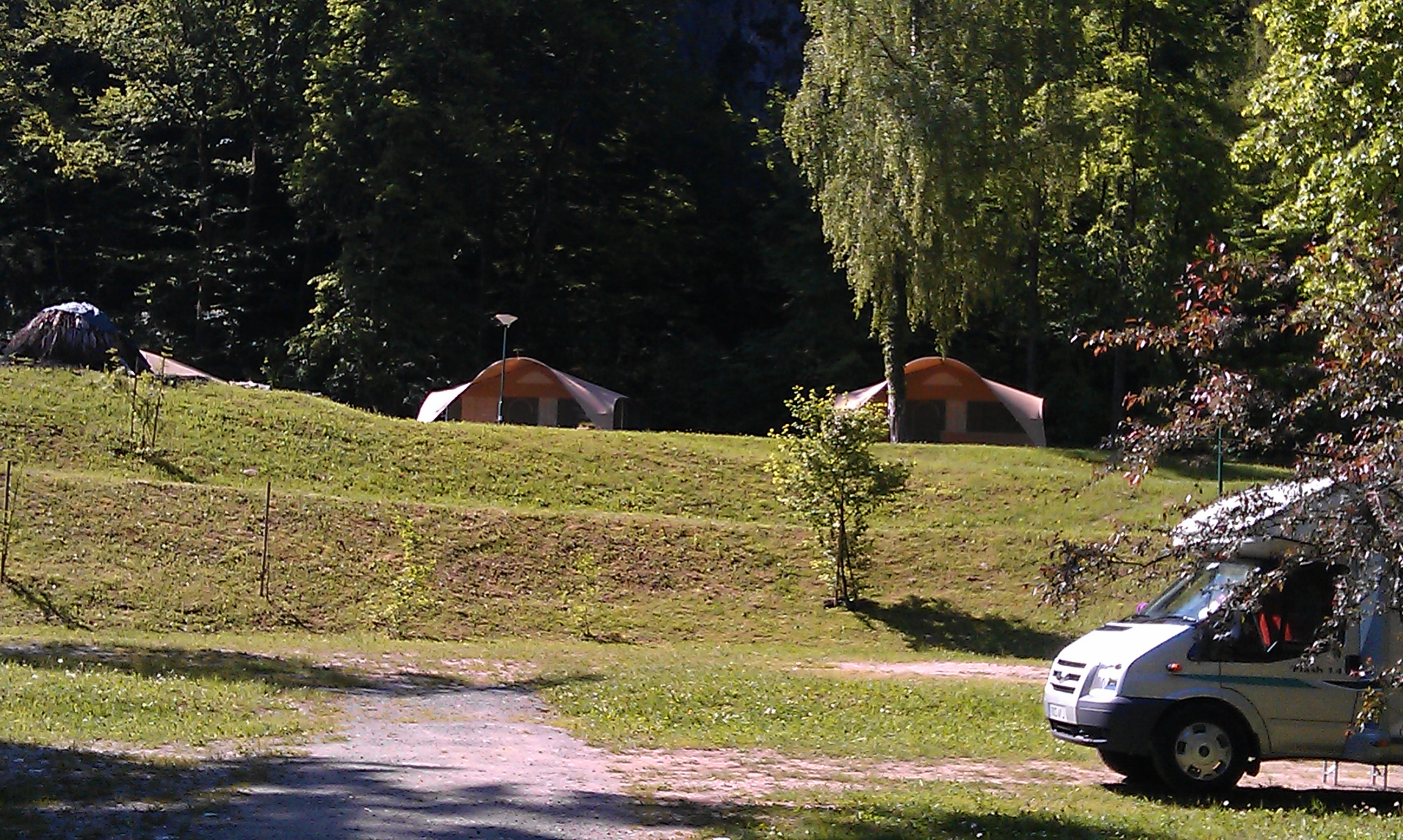 ограничение по скорости внутри кэмпинга - 10 км. и только для машин, заезжающих, чтобы остаться. то есть, движения там нет.