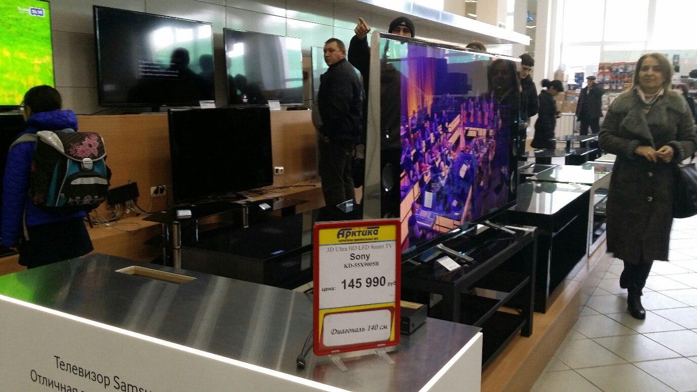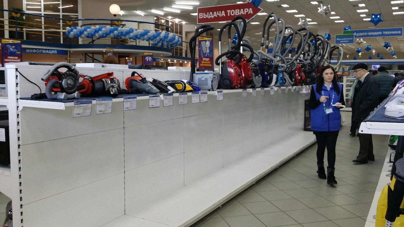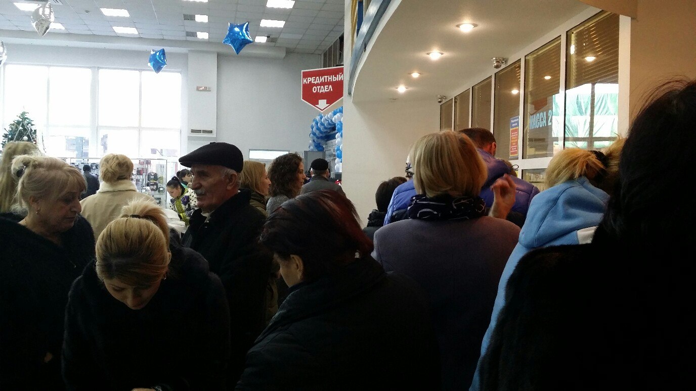 а днем сегодня было интересно и в гипермаркете техники "Арктика". очереди в кассу и на глазах пустеющие полки...  фотки сделаны днем, а вечером после рабочего дня я думаю там еще повеселей...