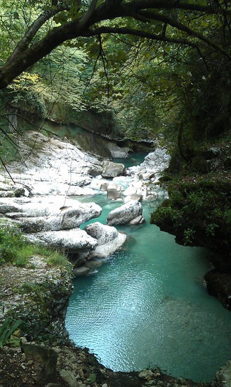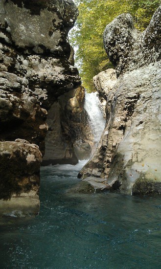 но еще больше мне понравилось вот здесь. правда я не помню как это место называется, но это действительно похоже на каньон. за не очень большую плату местные жители катают желающих на резиновой лодке по этой голубой реке между узких скал. очень необычное путешествие. к сожалению, телефон не передает и десятой части.