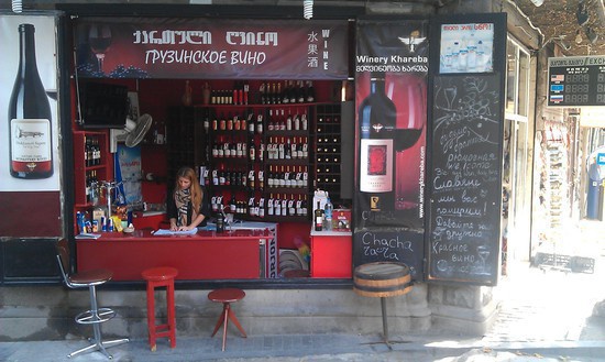 но есть и излишне самонадеянные призывы: "Славяне, мы вас помирим"... при этом девушка по-русски почти не говорила, она была откуда-то из-под Батуми. но так, лавка очень приятная.