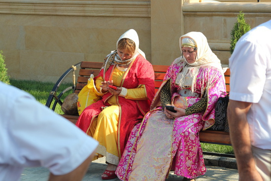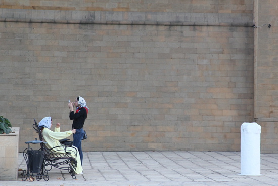 по дороге зашли в Джума-мечеть, старейшую в России (1300 лет). сфотографировать как-то не удалось, разве что этих прихорашивающихся посетительниц.