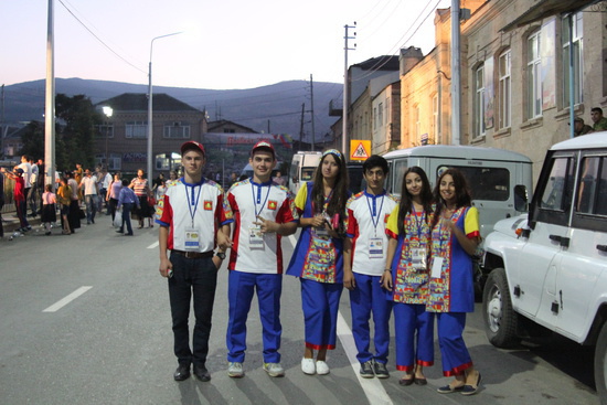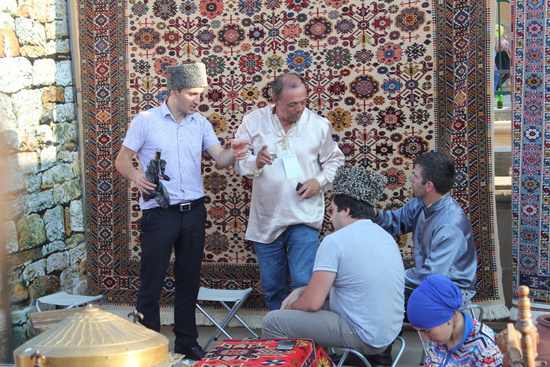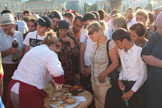 у секции осетинской делегации наблюдался ажиотаж в связи с раздачей осетинских пирогов.