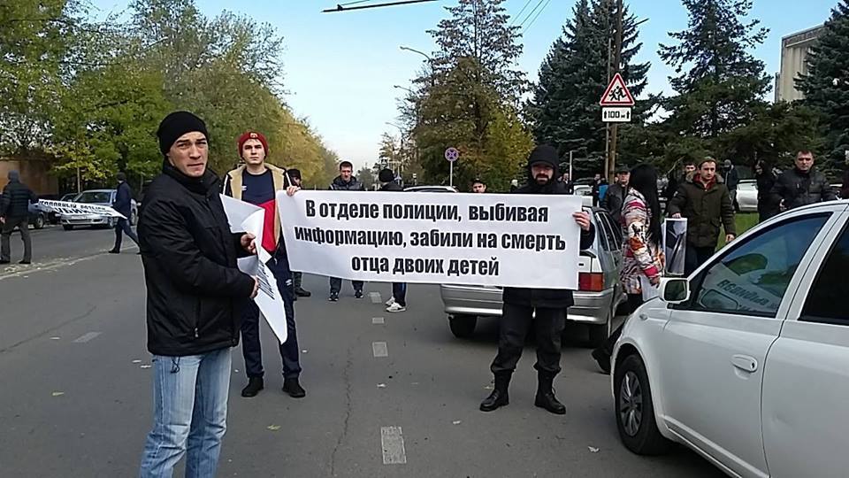 Возле республиканского МВД идет стихийный митинг родственников скончавшегося в больнице после допроса в Иристонском отделе полиции Владимира Цкаева. по версии родственников, он умер от пыток. на фотографиях, распространяемых в сети все на это очень похоже. официальная версия - стал сам себя избивать в отделе и умер от сердечной недостаточности. всему этому предшествовал расстрел сотрудника ОМОНа в поселке Южный возле Владикавказа (сотрудник тяжело ранен).