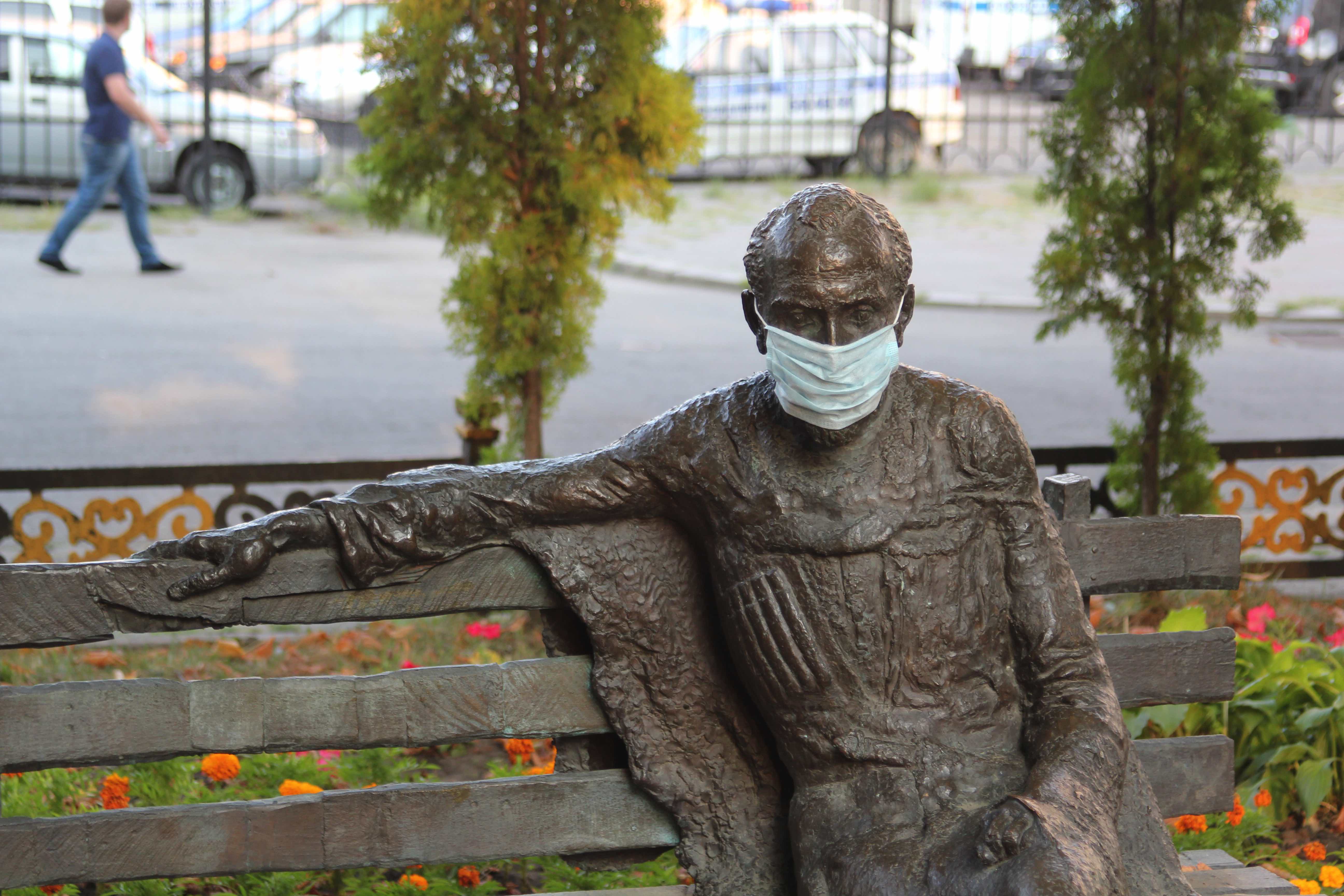 хотя, конечно, немного отвлекаясь от темы, то, каким его изобразил скульптор Владимир Соскиев, делает респираторную маску весьма гармоничным дополнением к образу поэта:
