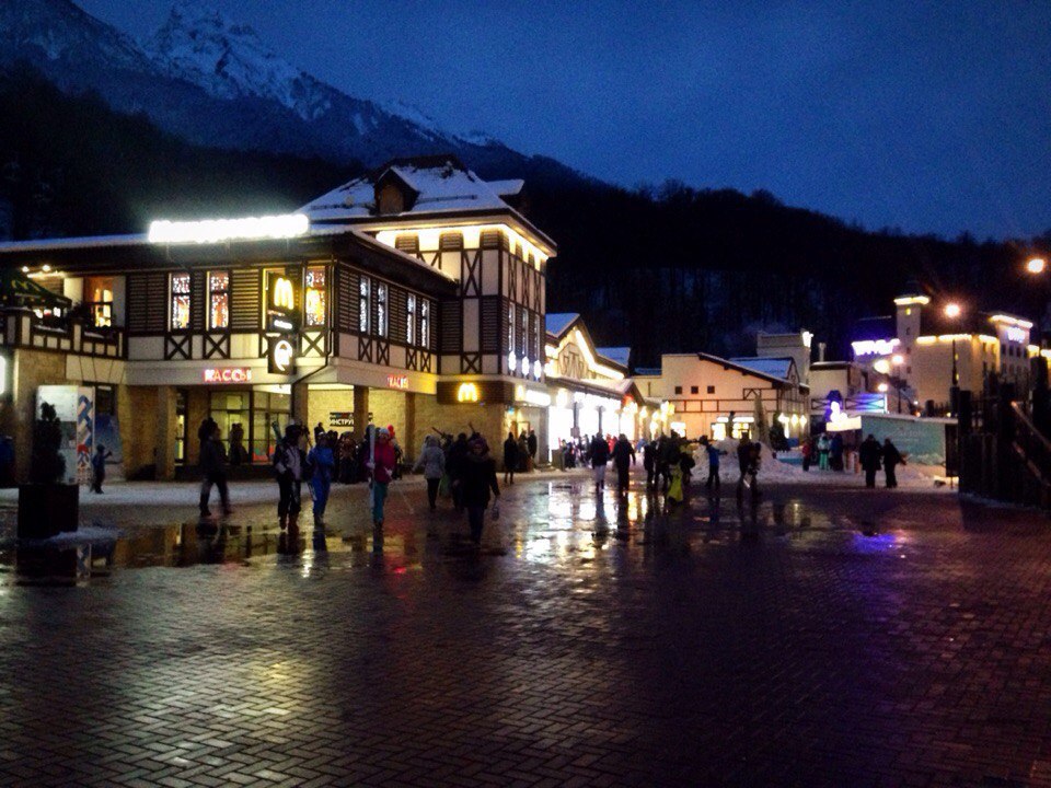 Красная поляна - отлично, не знаю какие дурные деньги сюда втопили, сколько украли, но выглядит это как современный европейский зимний курорт. трассы не пробовал, не катаюсь, но здесь в кайф просто гулять, людей полно, отовсюду музыка, ощущение праздника.