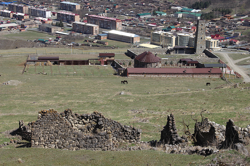 немного красочных фотографий волшебного по красоте и атмосфере месте - развалин древнего селения Цмыти. село находится на возвышенности, откуда открываются виды на дачи новых осетин, некоторые из которых отчаянно пытаются стилизовать их под древние башни. честно скажу, я считаю невероятно бездарной идею пытаться среди величия этой древности повторить ее красоту, тупо копируя внешний вид.