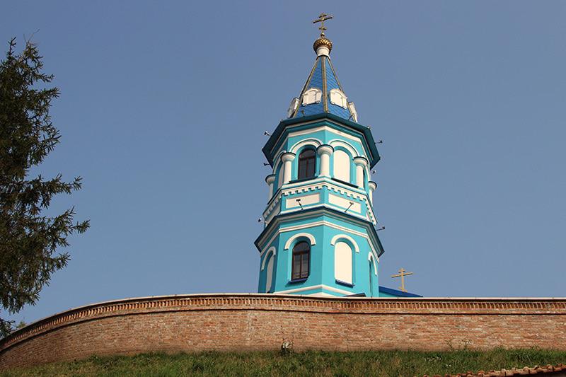 красивые цвета у церкви, на фоне ясного неба хорошо смотрится