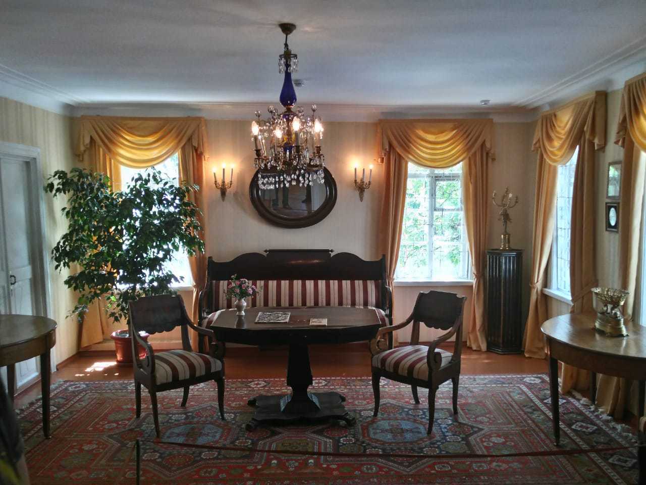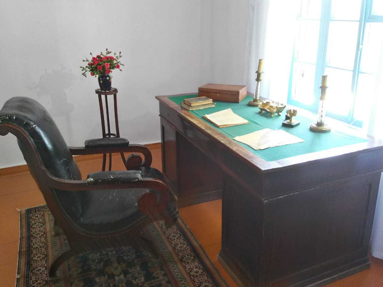 внутри письменный стол Лермонтова, за которым он писал много чего, например, "Бородино".