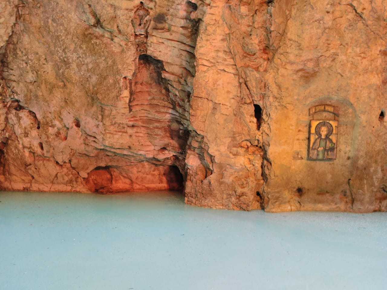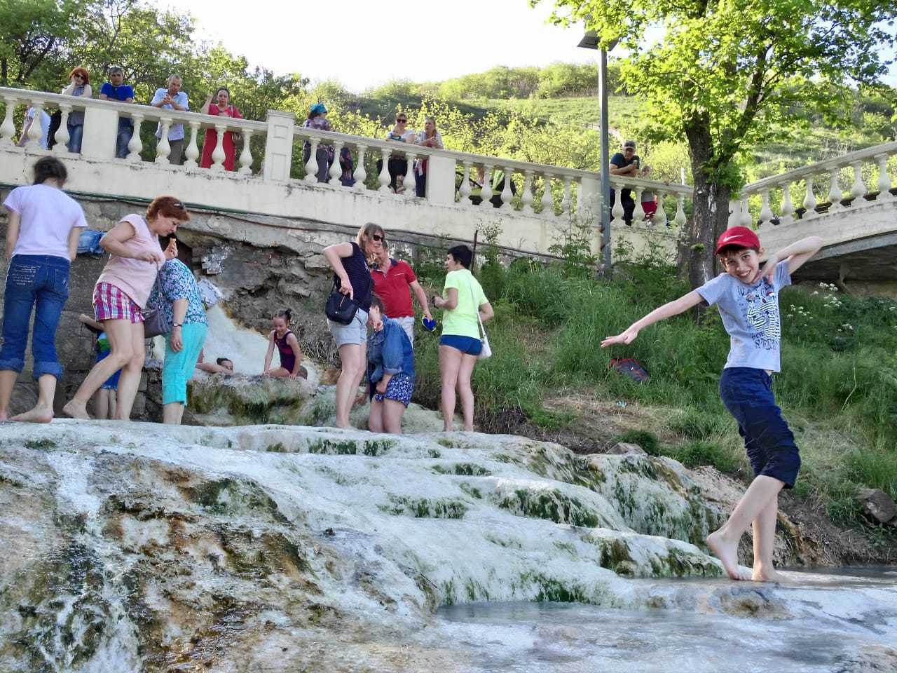 несмотря на решетку, в подземных водах Провала все же можно и ноги помочить и даже искупаться, там где вода вытекает на склон