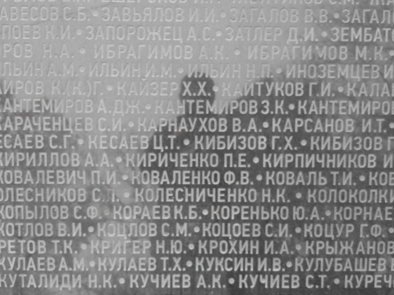 имена выбиты в алфавитном порядке и легко читаются. например, можно видеть имя Сергея Кучиева, отца прославленного Юрия Кучиева, капитана ледохода "Арктика", первым добравшегося до Северного полюса.