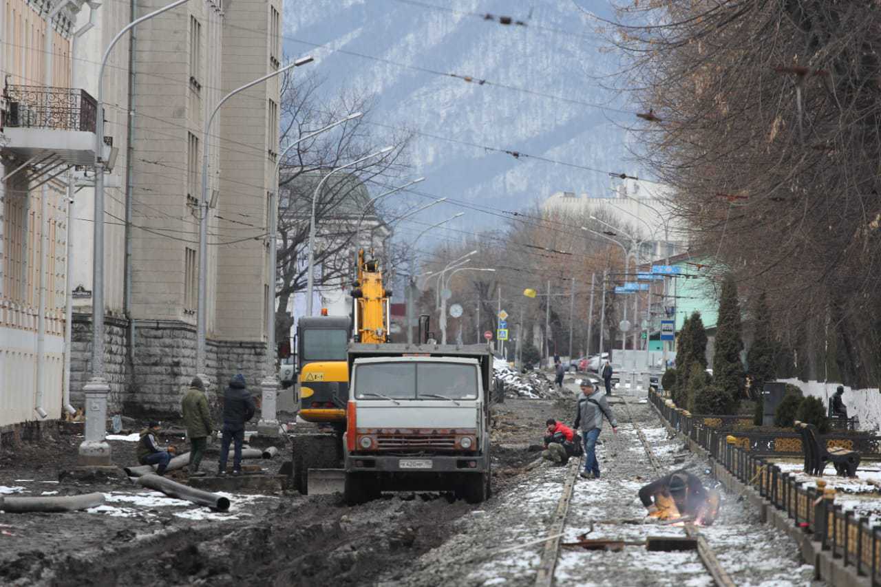 в верхней части проспекта Мира капитальный двусторонний ремонт. это главная центральная улица Владикавказа и место вечерних прогулок очень многих горожан. сейчас большая часть улицы для для прогулок закрыта. меняют трамвайные рельсы, прокладывают коммуникации, и само покрытие. весь этот участок от улицы Горького до площади Свободы (включая саму площадь) обещают покрыть гранитной плиткой. одну сторону проспекта обещают сдать к майским праздникам, вторую сразу после. учитывая умение наших чиновников обещать, я слабо в это верю, но посмотрим...