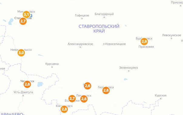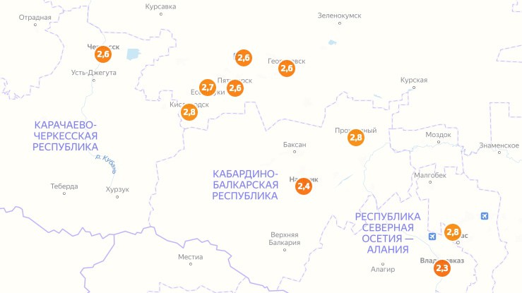 теперь смотрим на скриншоты. из всех городов республик Северного Кавказа Владикавказ худший - рейтинг 2,3.