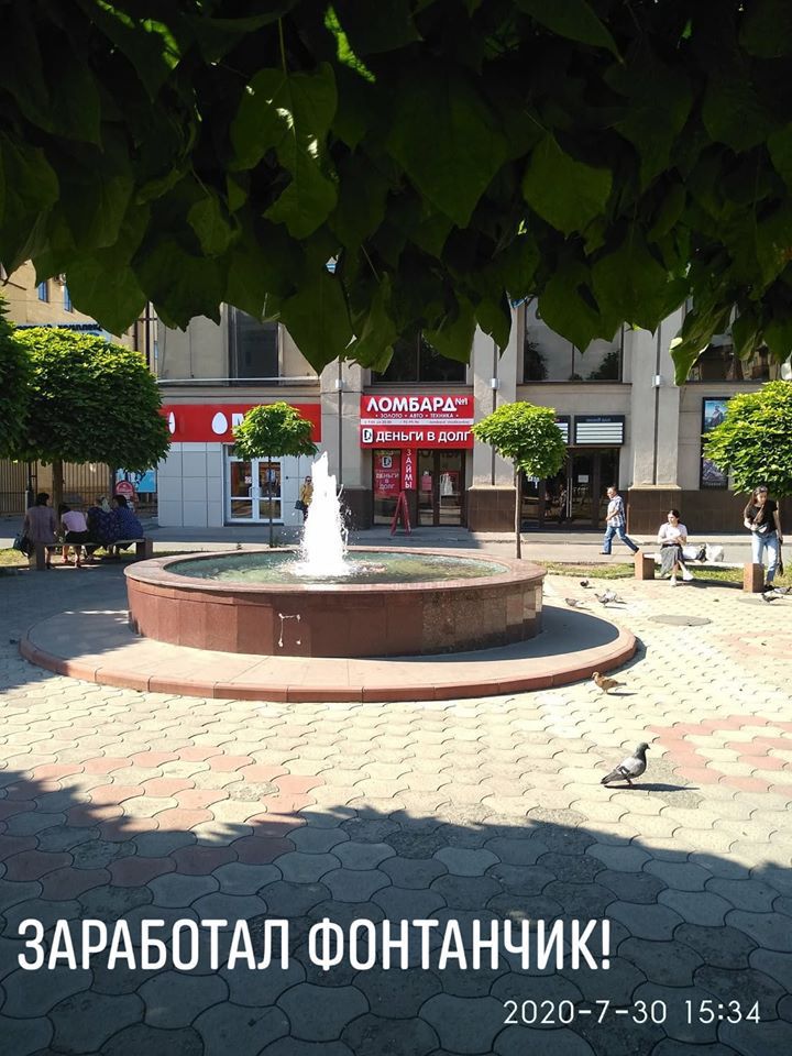 один из центральных фонтанов – на "Дружбе". он небольшой, но место очень людное, душное, и фонтан там был очень кстати. он тоже очень долго не работал, но тут Залина Мараданова в своем фейсбуке сообщила, что вдруг начался ремонт.